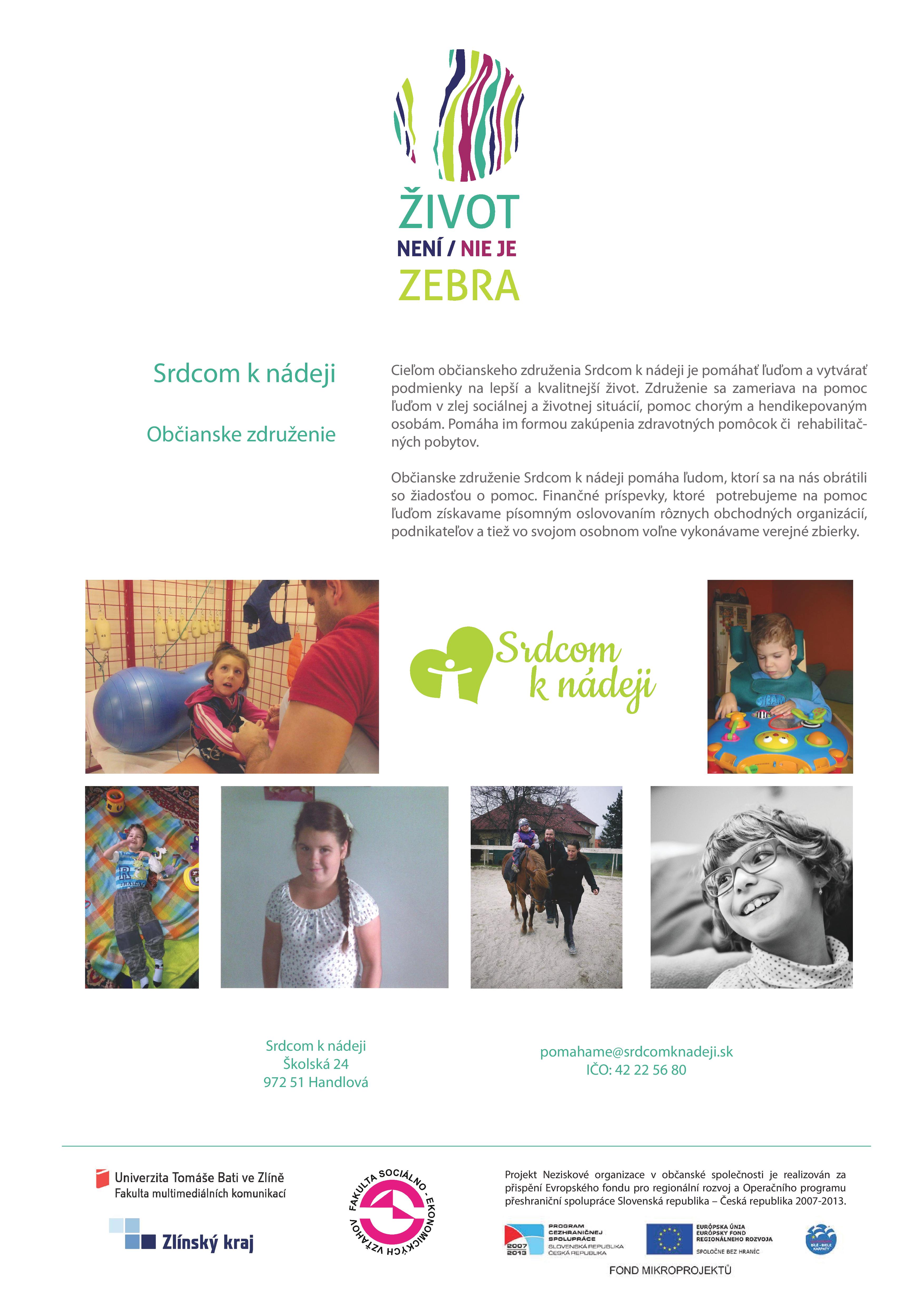 Viac informácií získate na oficiálnych stránkach projektu Život nie je zebra a Život nie je zebra facebook a našej facebookovej stránke Srdcom s nádejou.